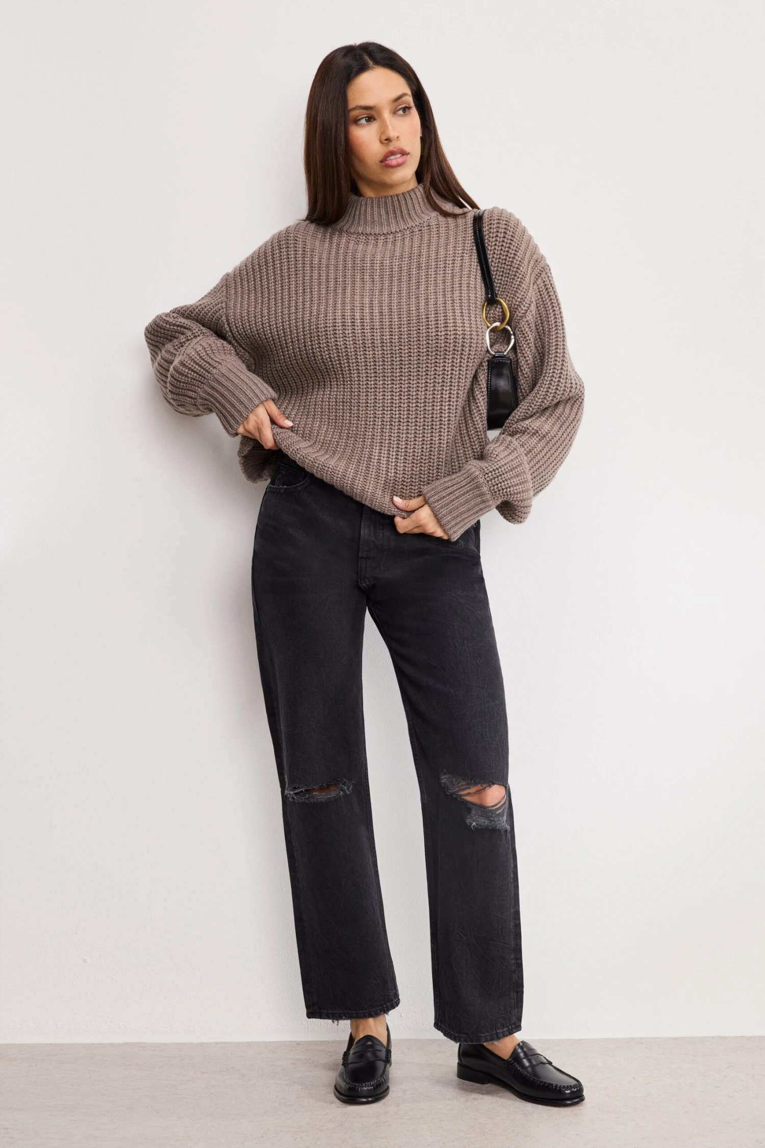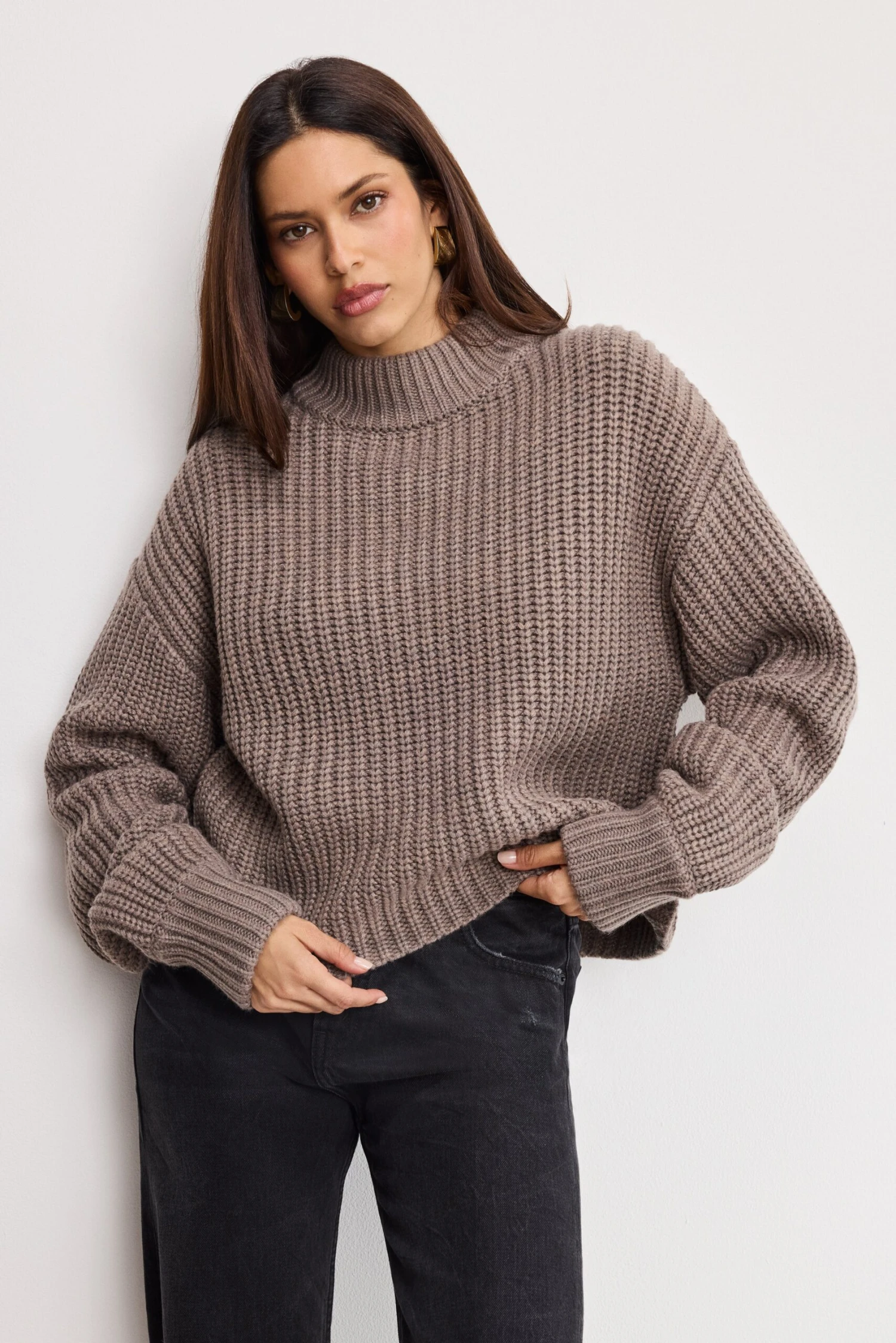 Stay cozy and casual in the Chunky Knit Mock Neck Sweater. The thick knit fabric keeps you warm, while the mock neck adds a little extra comfort and style. Perfect for chilly days, this sweater pairs easily with jeans for a laid-back, cozy look.