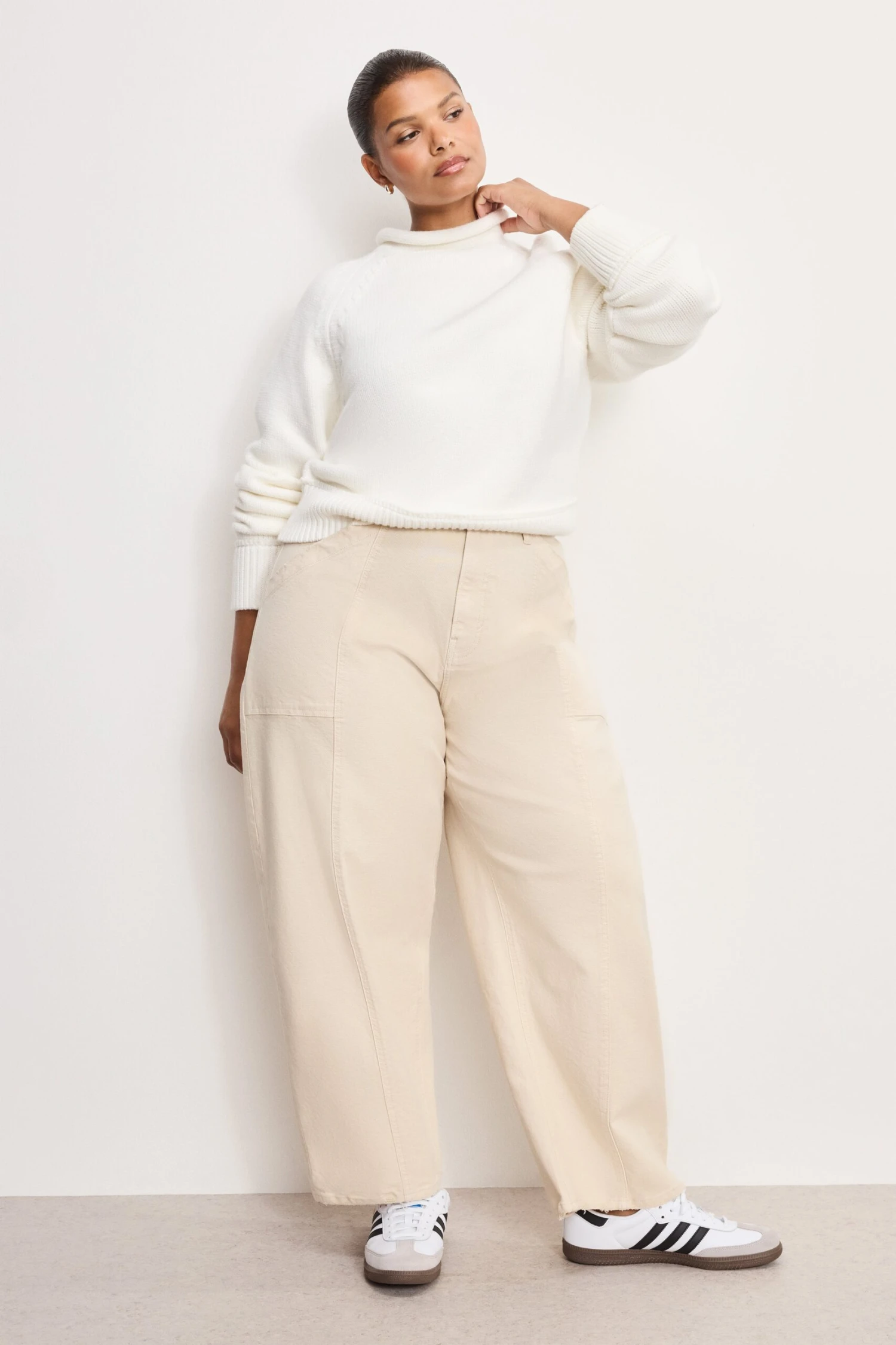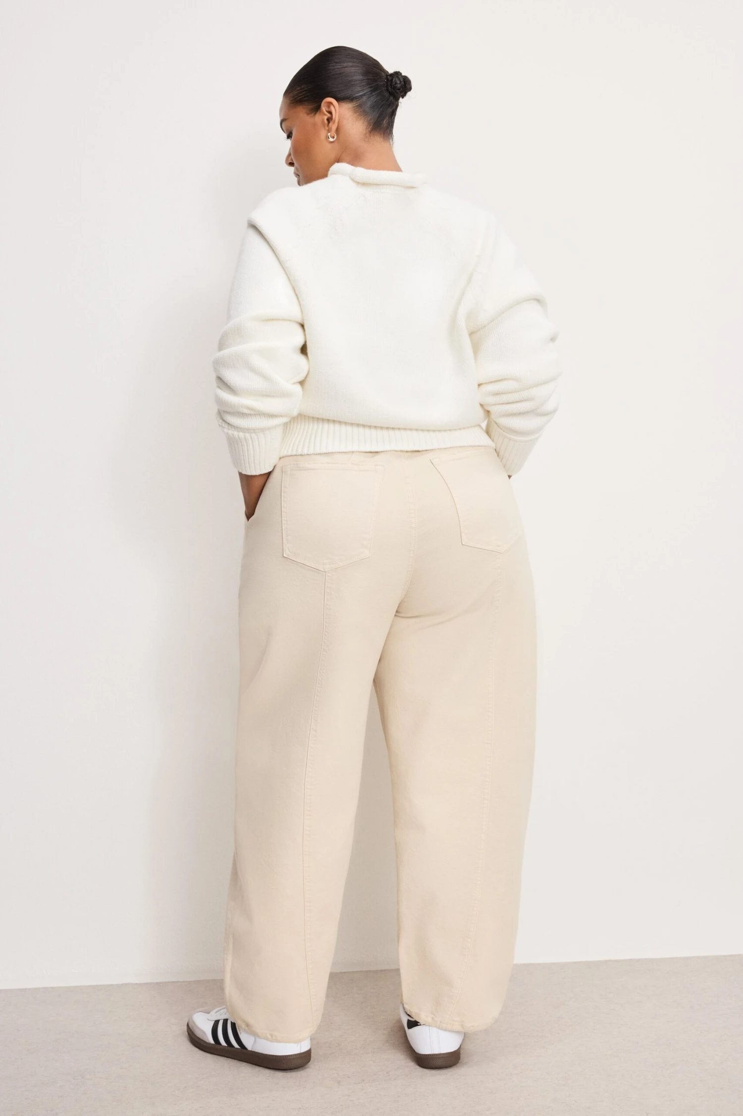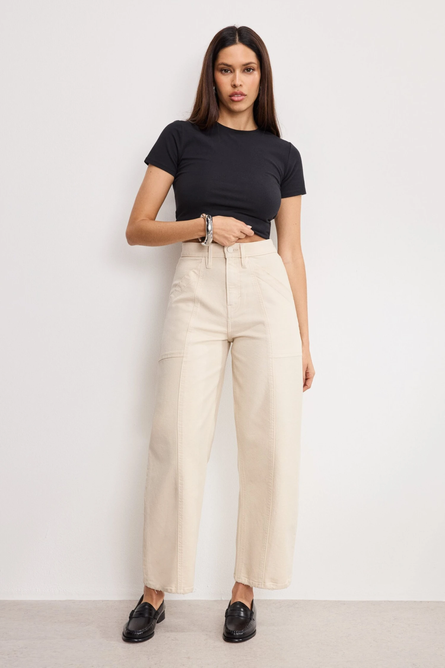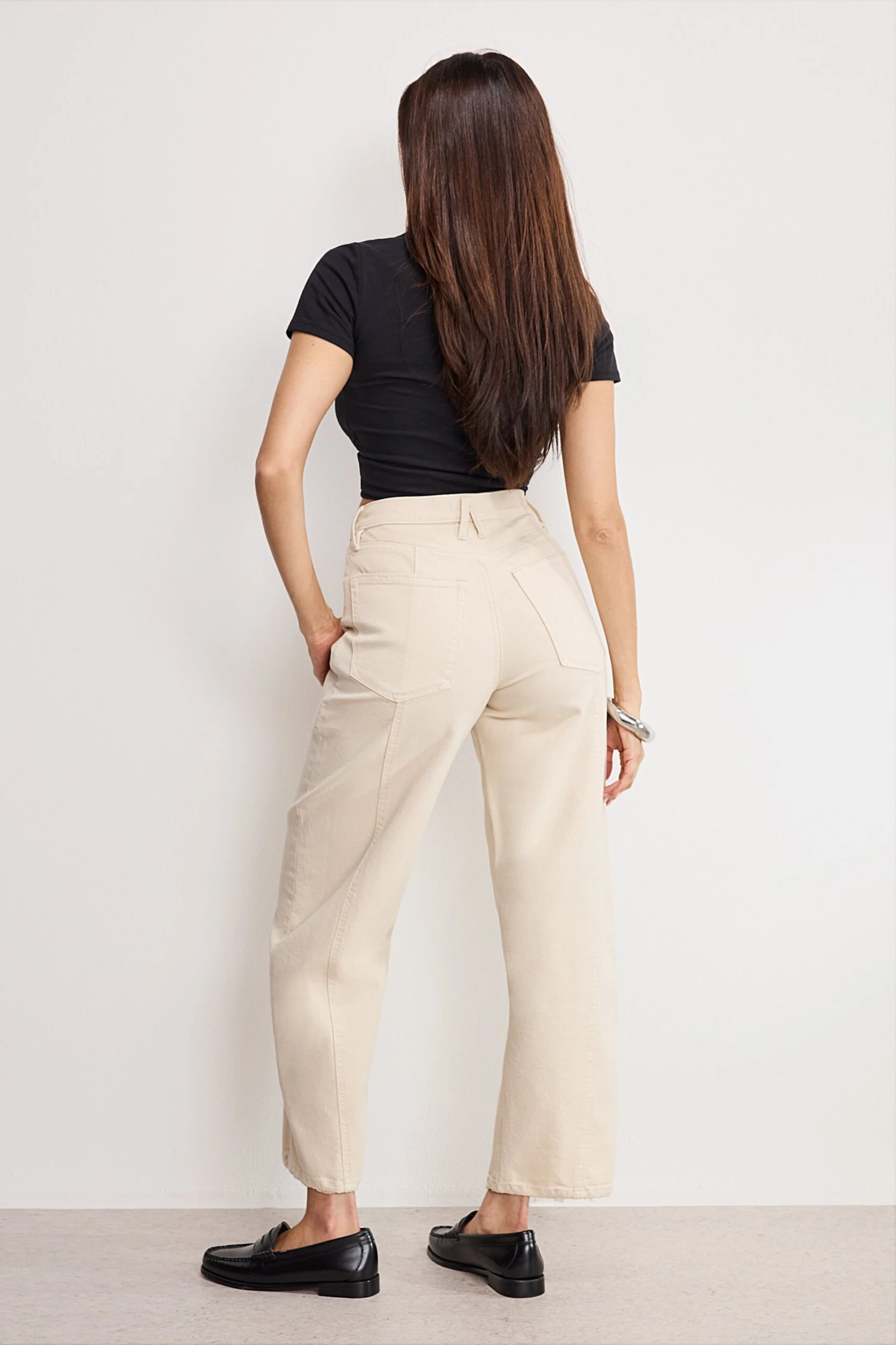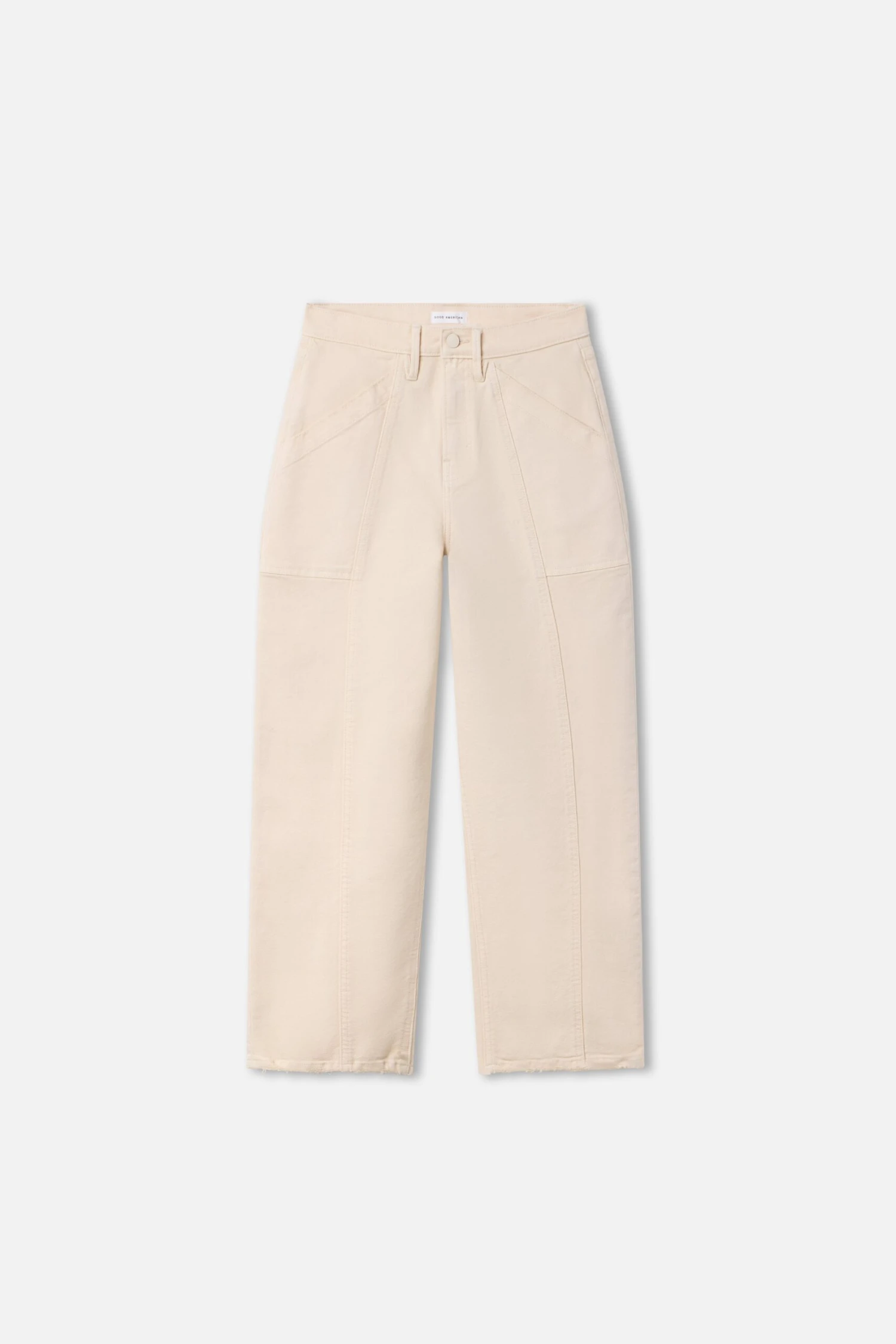Crisp and sculpted with a relaxed fit and curved legs, these high-rise canvas pants bring quiet structure to an otherwise effortless silhouette. Slanted pockets and front seaming add subtle shape and intention. Cropped to flatter, cut to move with you. Match back with our Canvas Jacket for an edgy worn-in look.