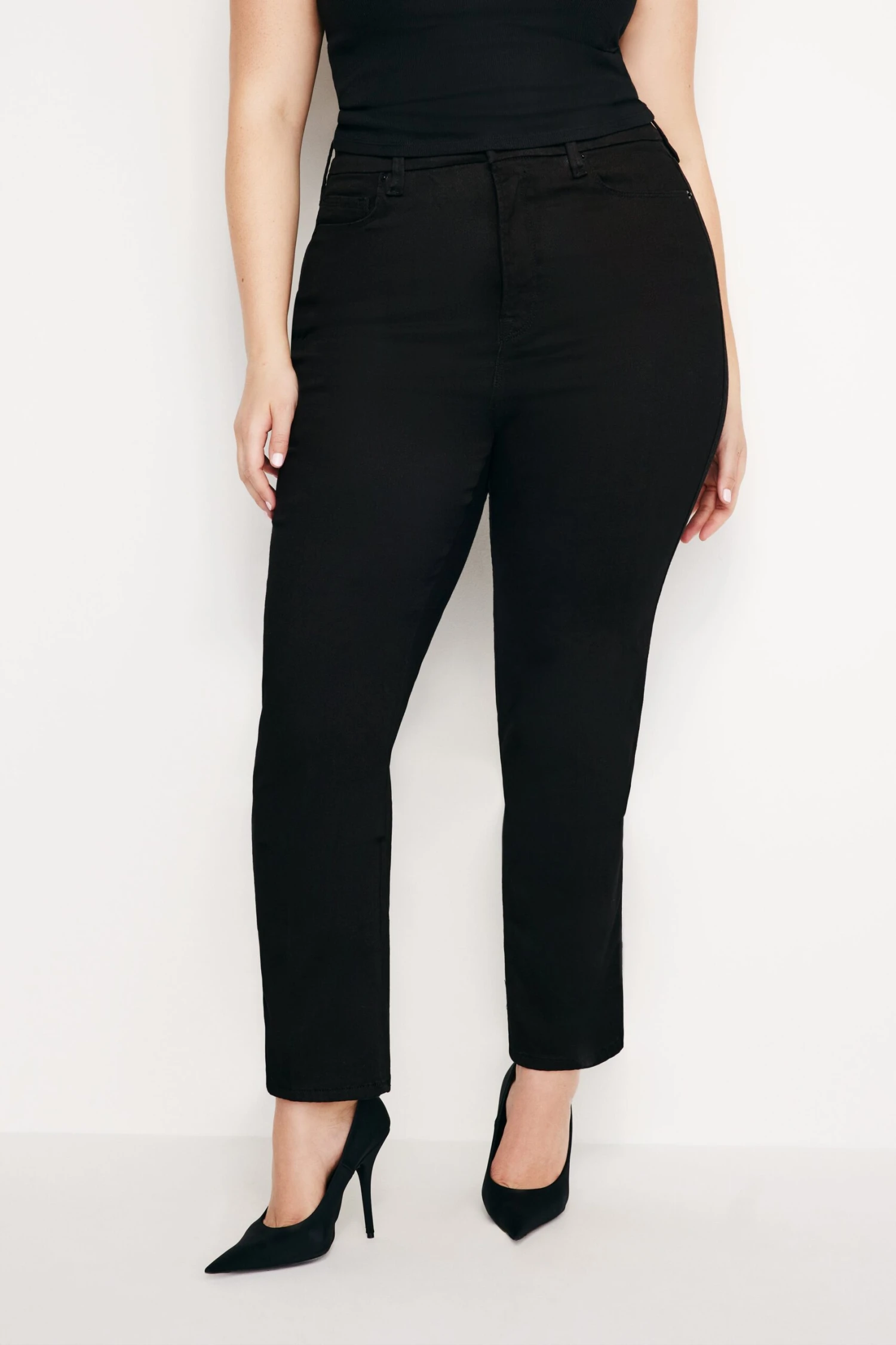 Curve defining jeans like no other, these super high-rise straight jeans feature a contour seam designed to enhance your shape and define you silhouette. Engineered to resist fading, our new premium denim fabrication uses Stay Black Technology that keeps a deep rich color up to 30 washes.