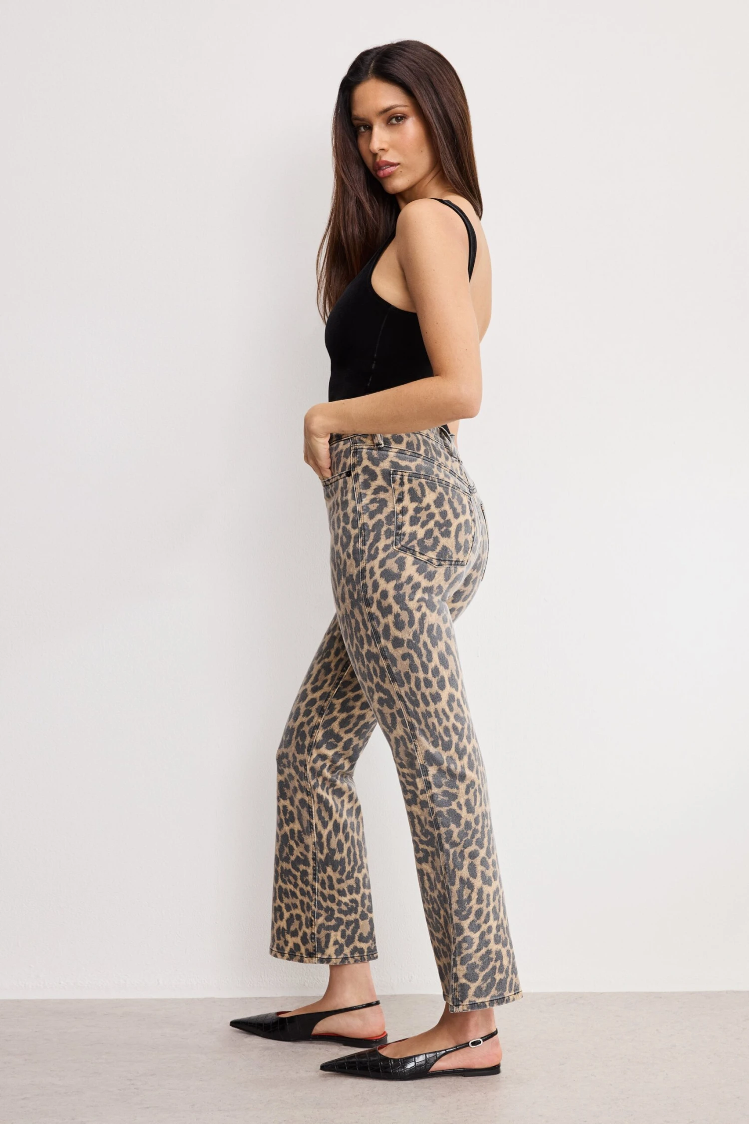 The ultimate statement jeans, featuring a high-rise waist, a clean hem, and a flattering kick flare silhouette.
