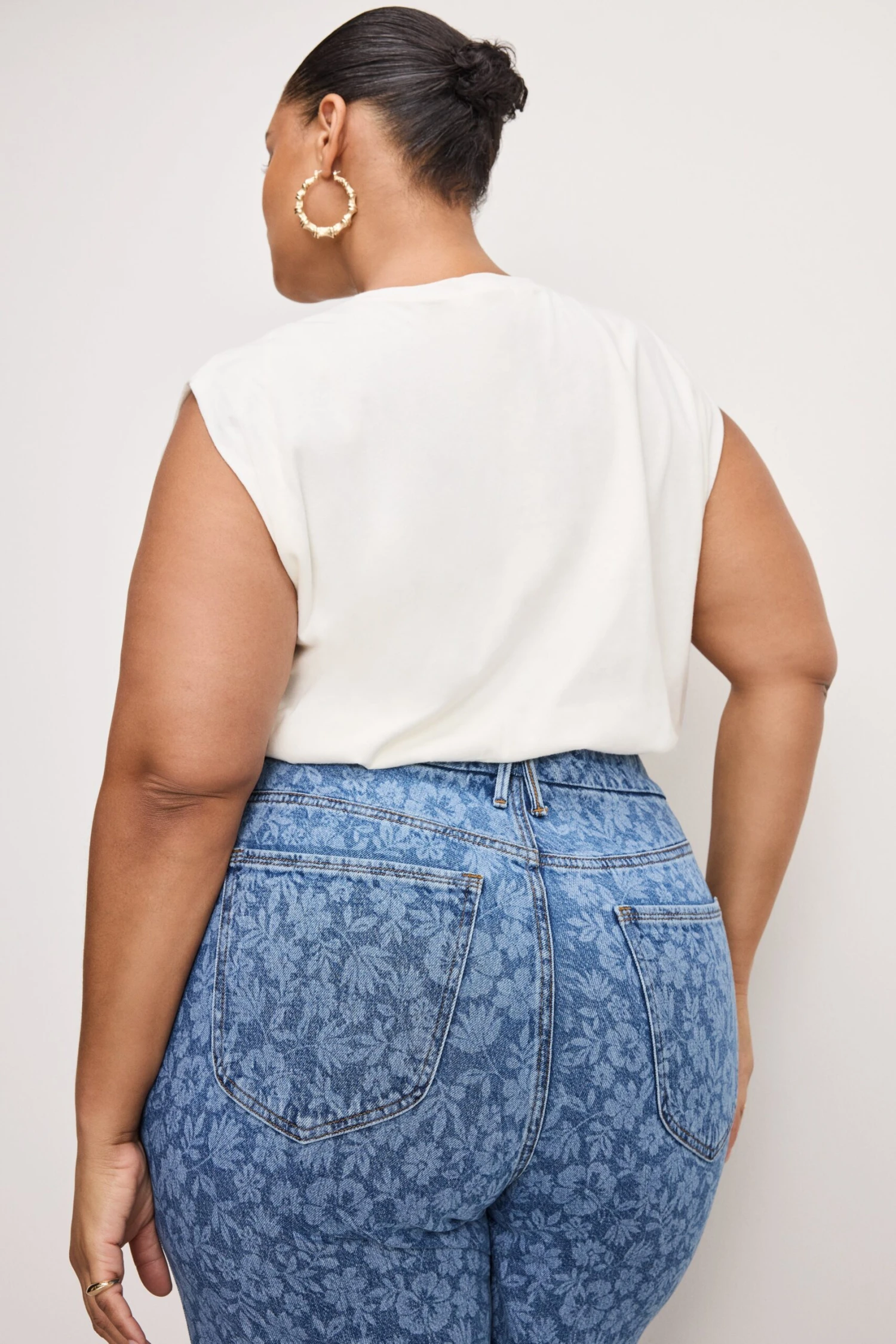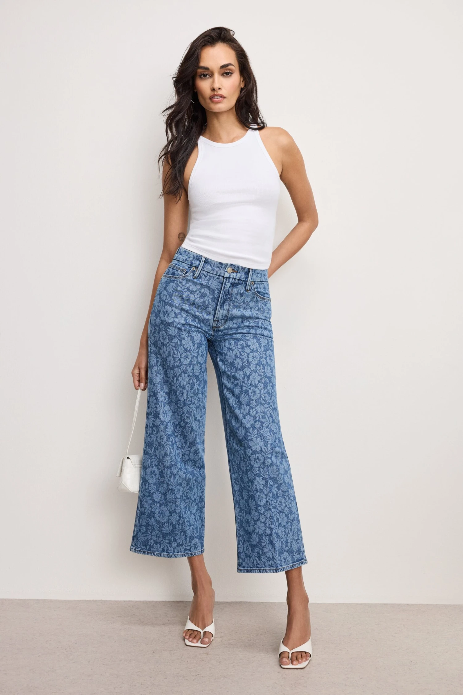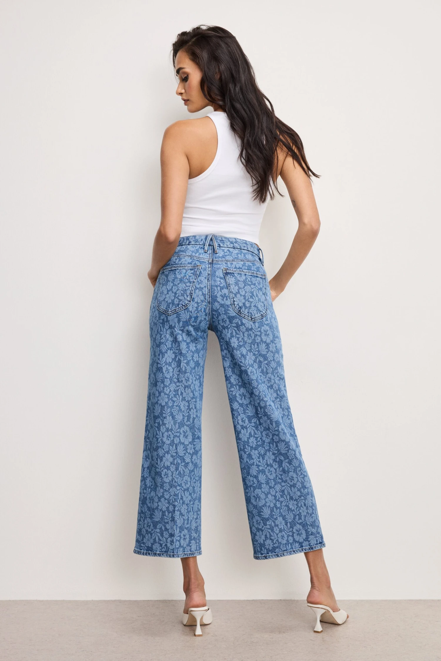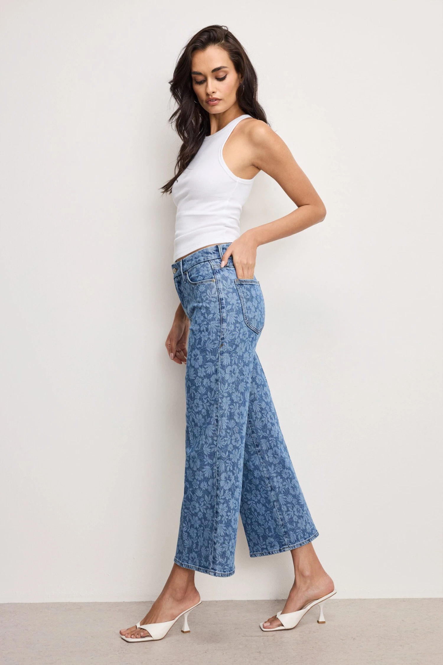 A sexy waist cinching style designed to enhance your natural silhouette with a high-rise, cropped wide loose legs and flower prints.