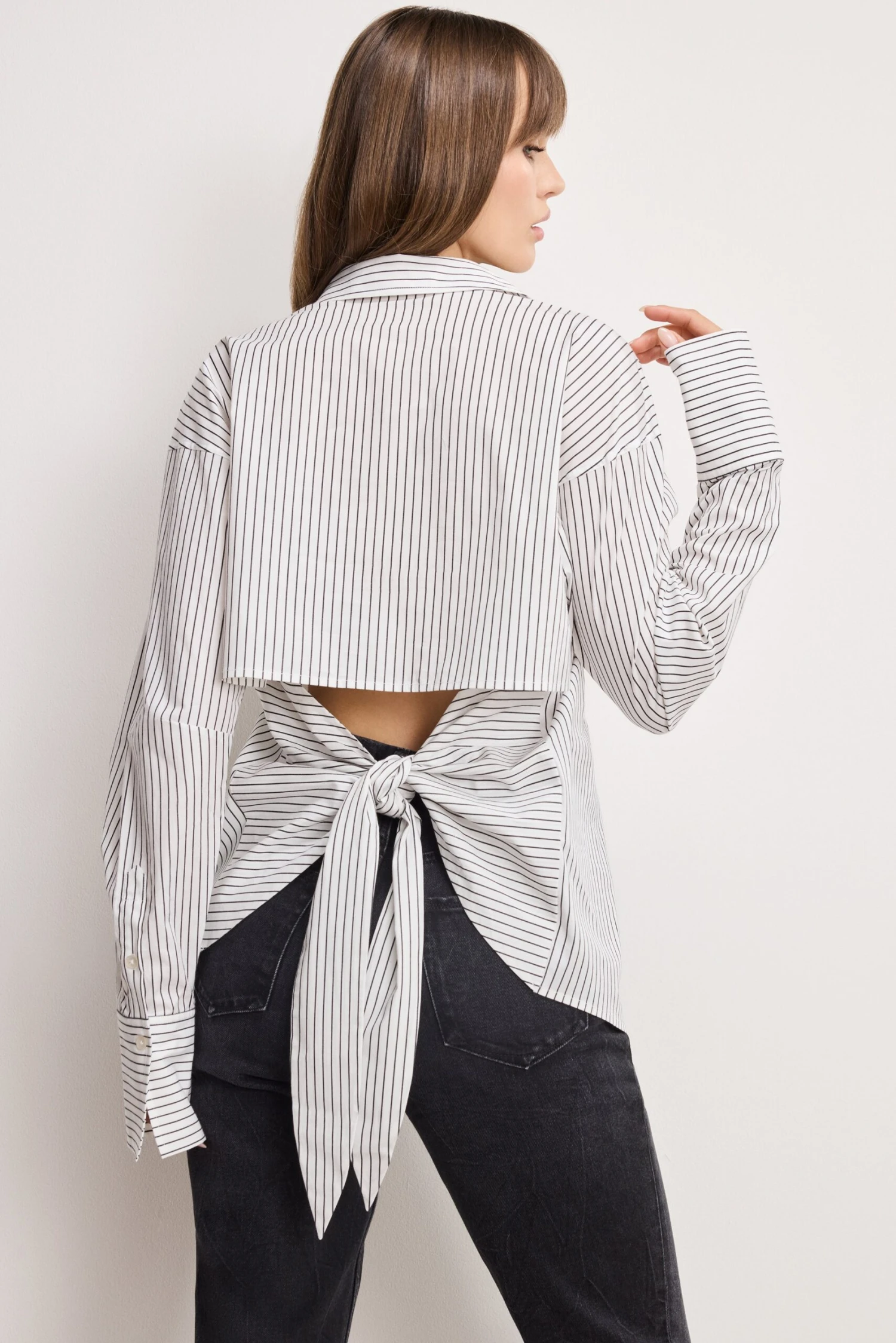 Crisp from the front, unexpected from the back. The Poplin Tie Back Shirt pairs structured poplin with an open back and an adjustable back tie for just the right amount of edge. Wear it summaryed up or slightly undone – it’s your classic shirt, reimagined.
