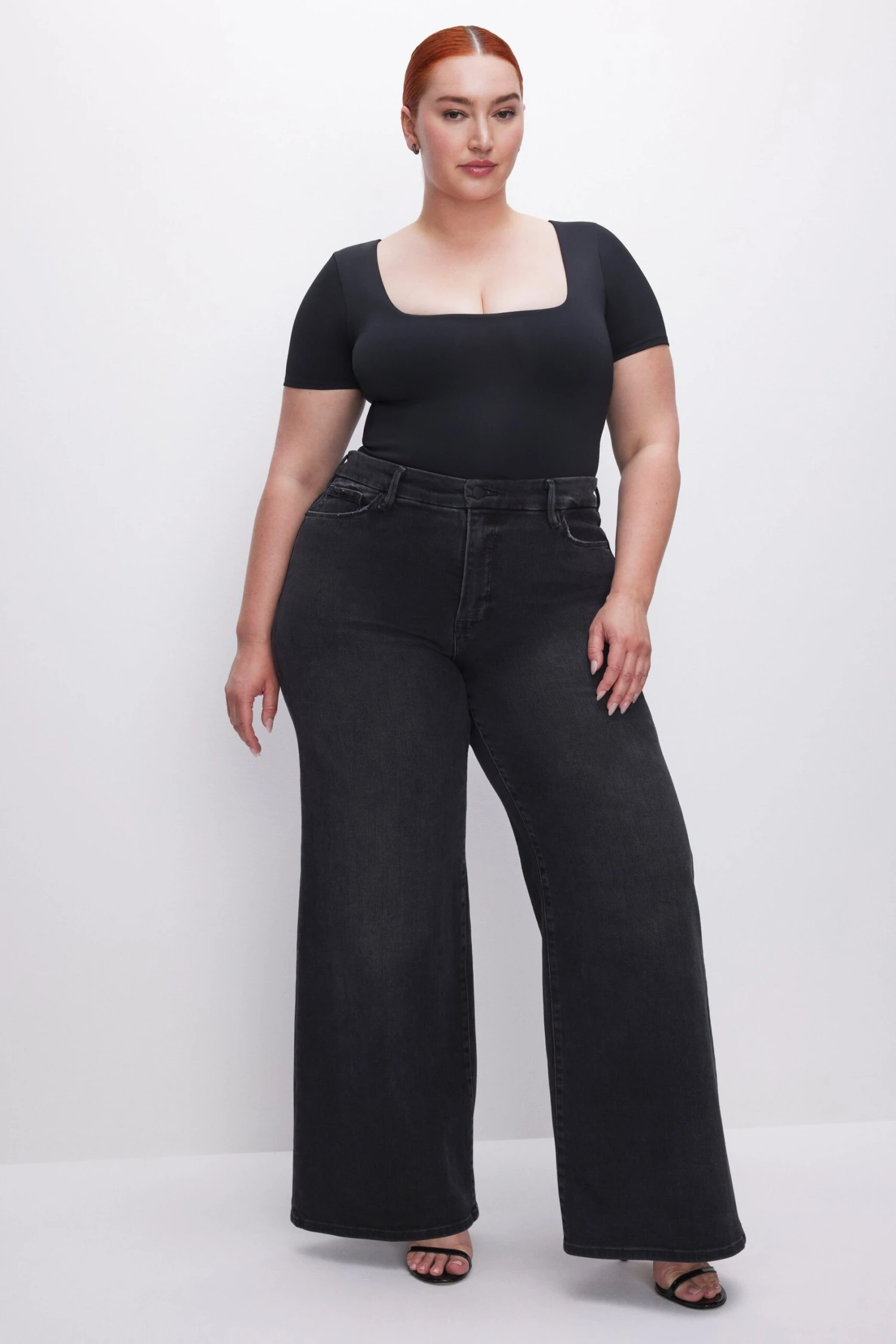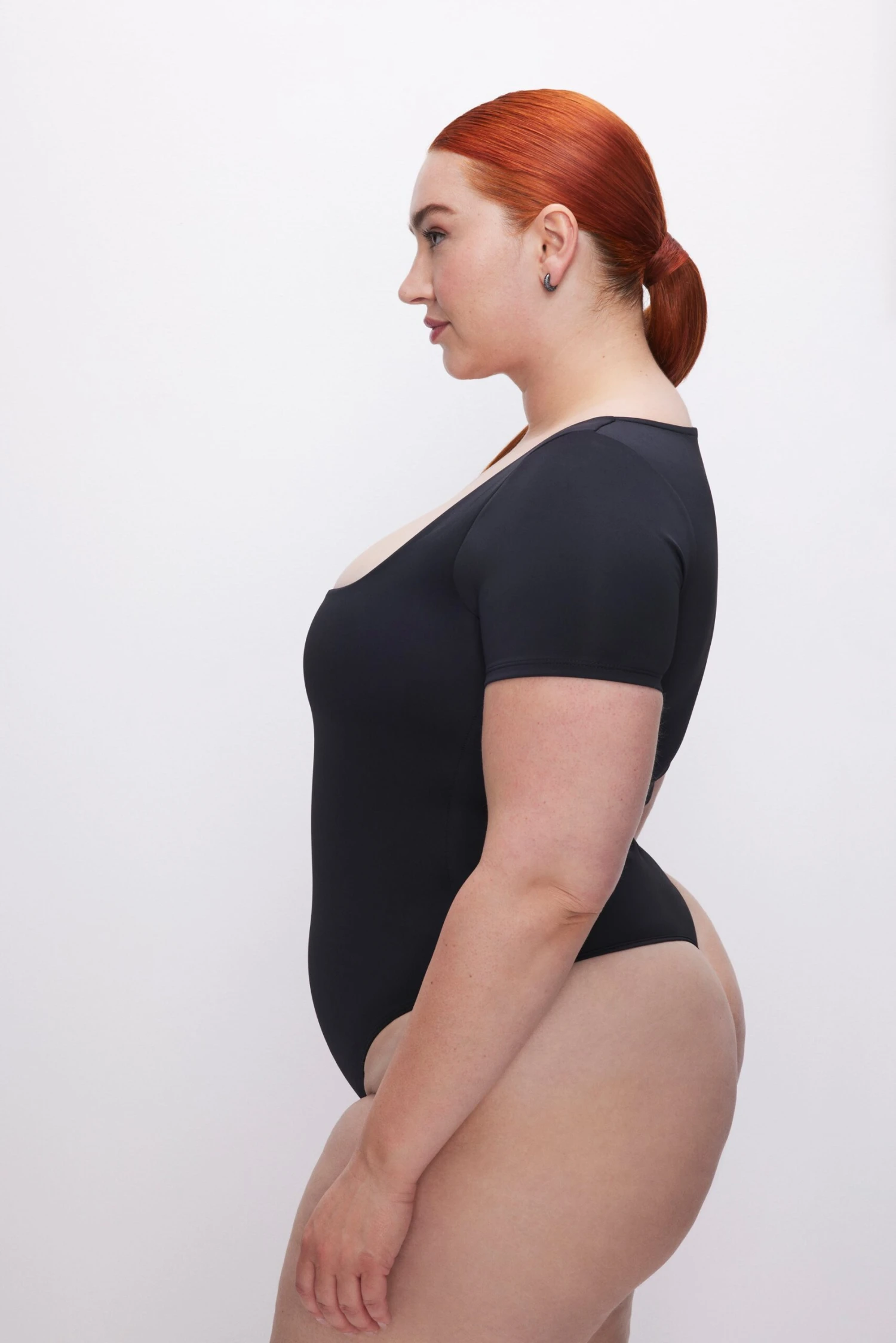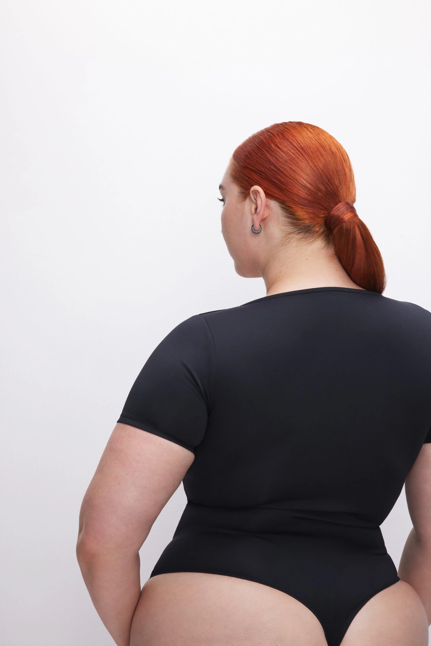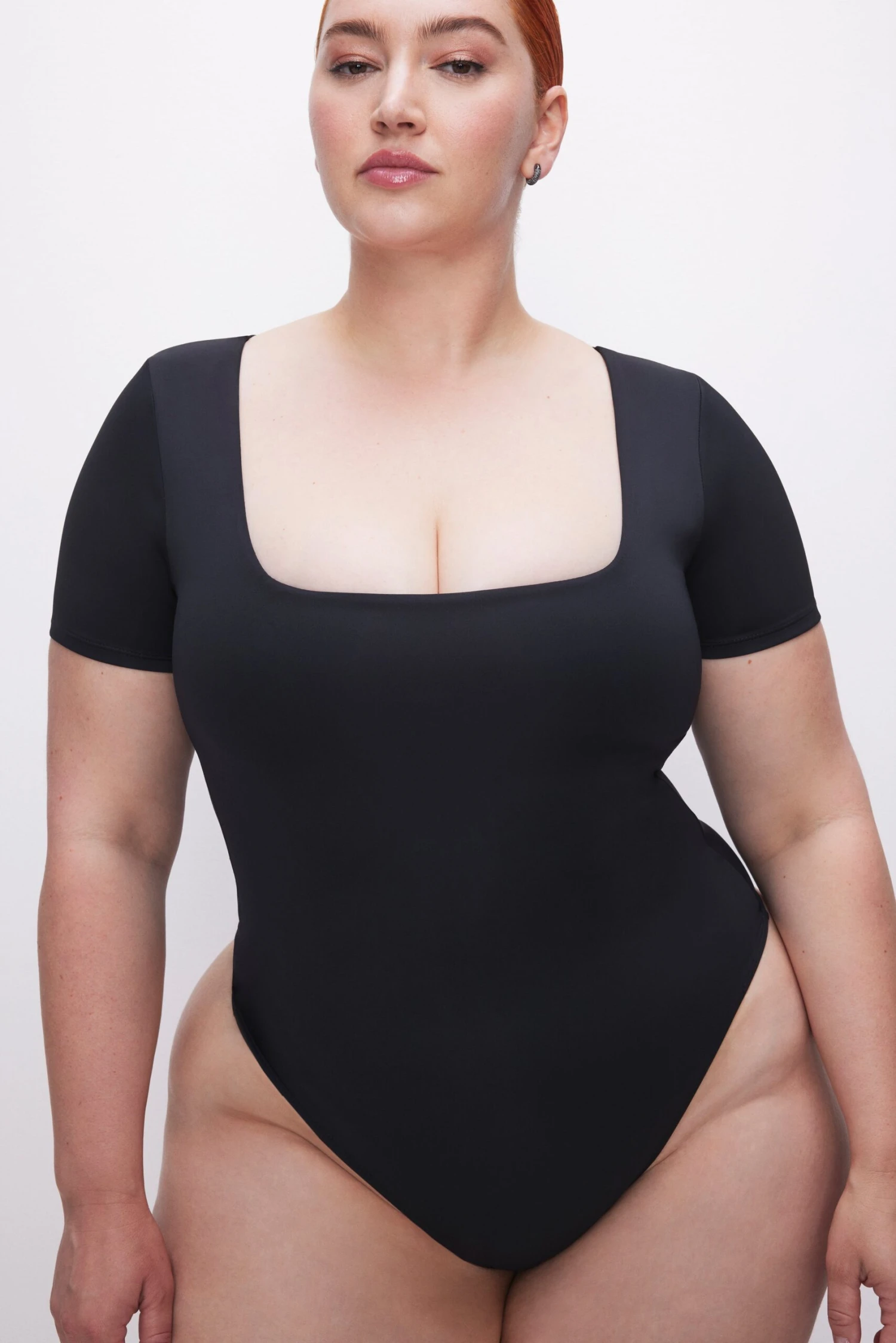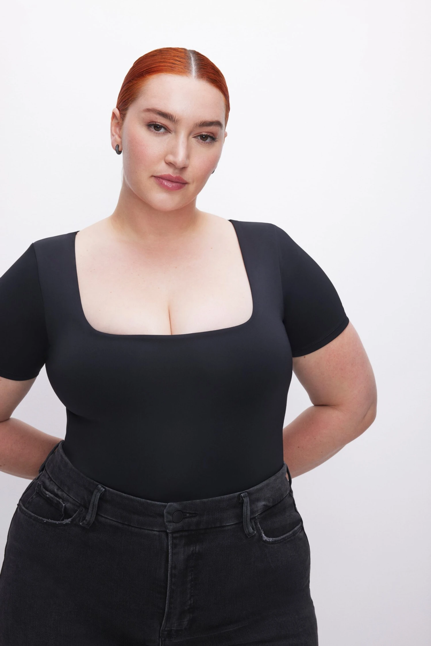 The curve-hugging, shape-enhancing, confidence boosting essential for every wardrobe. The Scuba Square Neck Bodysuit is made from a compact double knit stretch fabric that holds you in and smooths you out. Wear this with your favorite pair of jeans for the ultimate go-to outfit.