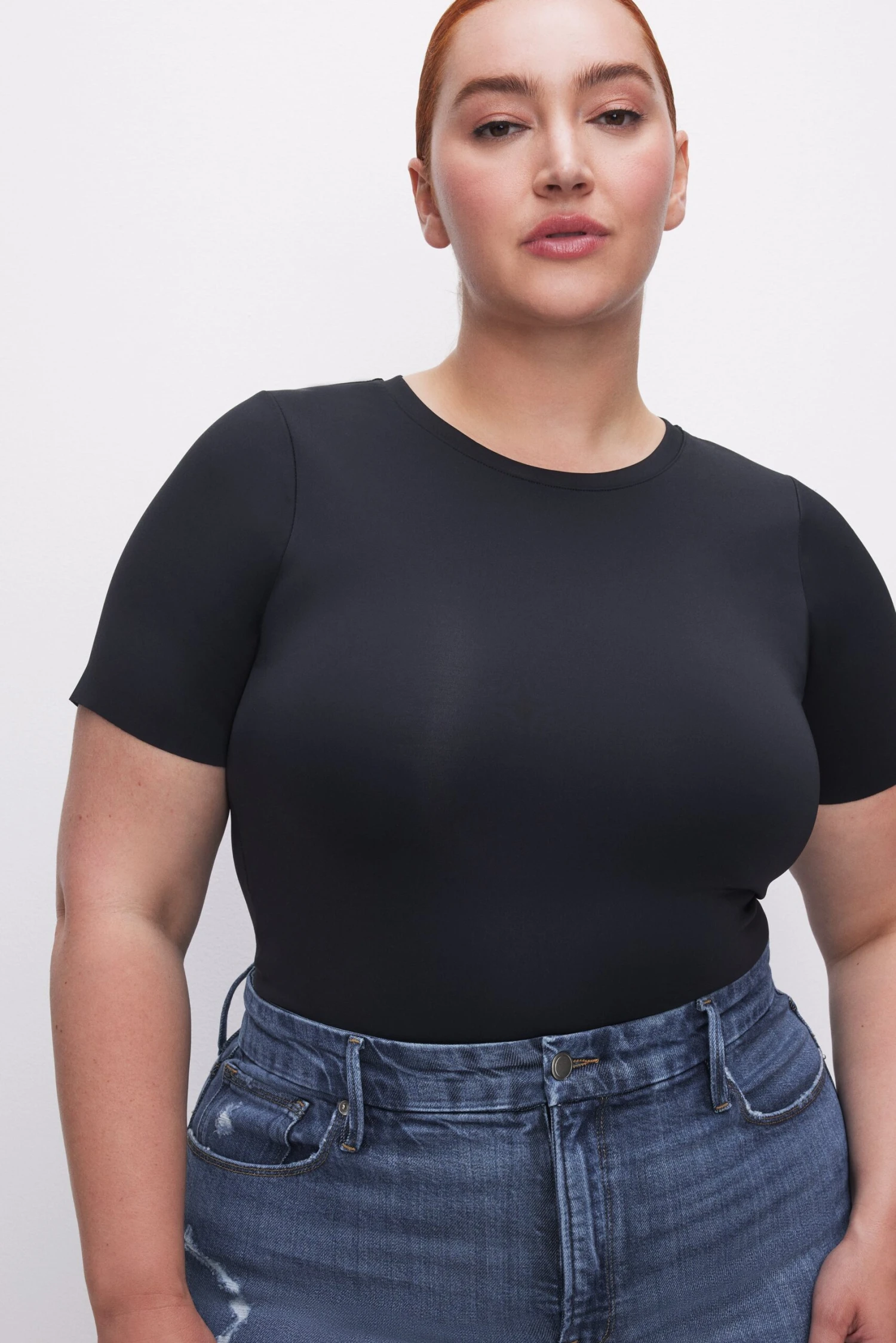 The curve-hugging, shape-enhancing, confidence boosting essential for every wardrobe. The Scuba Tee Bodysuit is made with our luxurious compressive fabric, designed to sculpt and smooth your curves. Wear this with your favorite pair of jeans on the daily, or dress it up with pants and skirts.