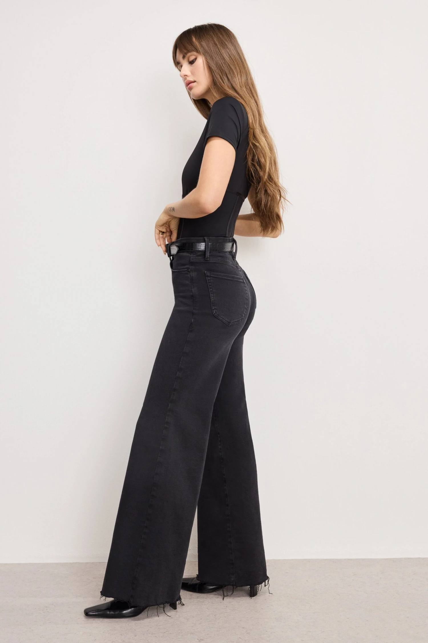 A sexy waist cinching style designed to enhance your natural silhouette with a high-rise and wide loose legs.