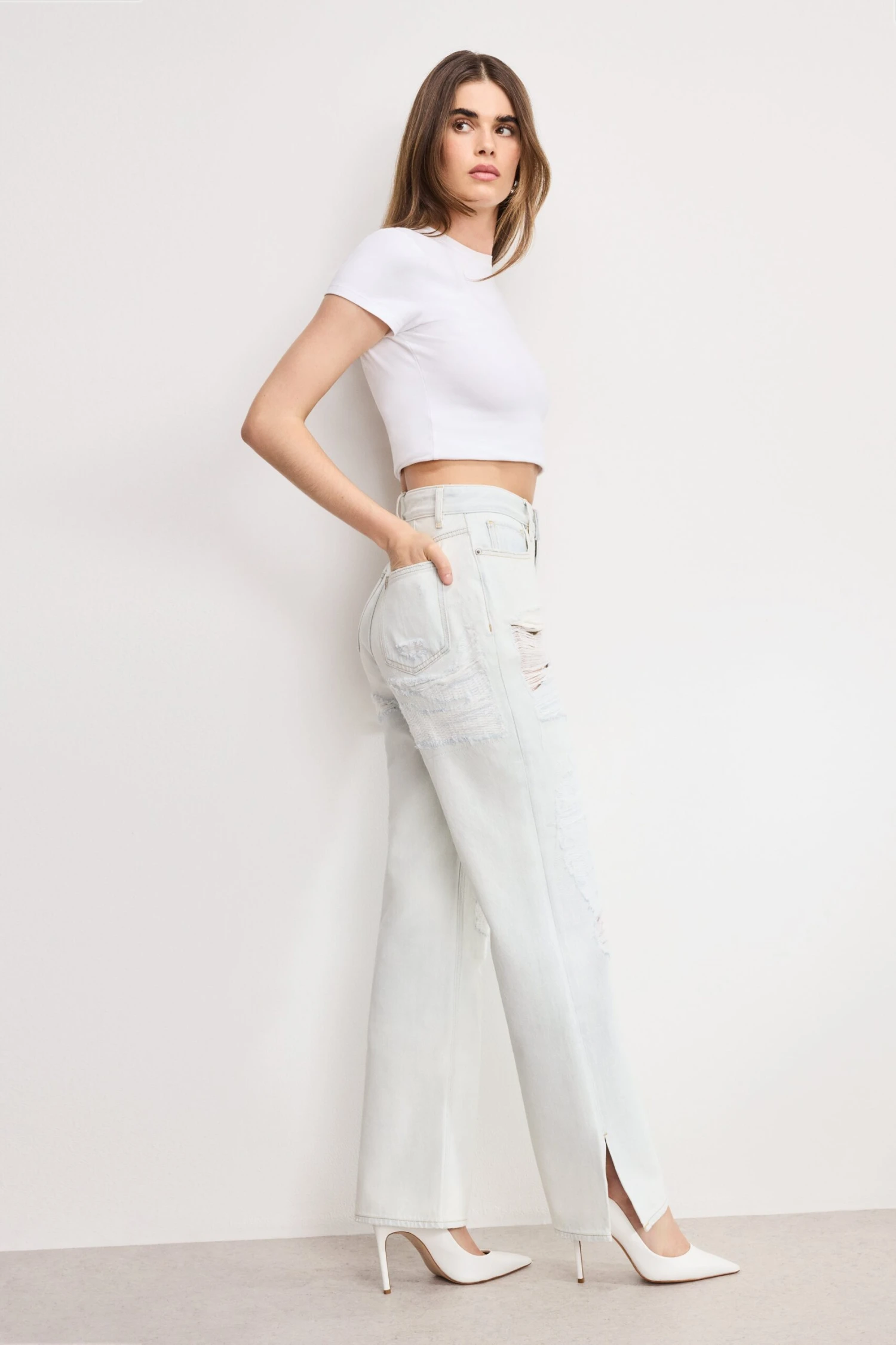 We took everything Khloé loves about our denim and put it into these jeans. We gave this pair an extra-long 36” inseam for a floor-sweeping, leg-lengthening look.