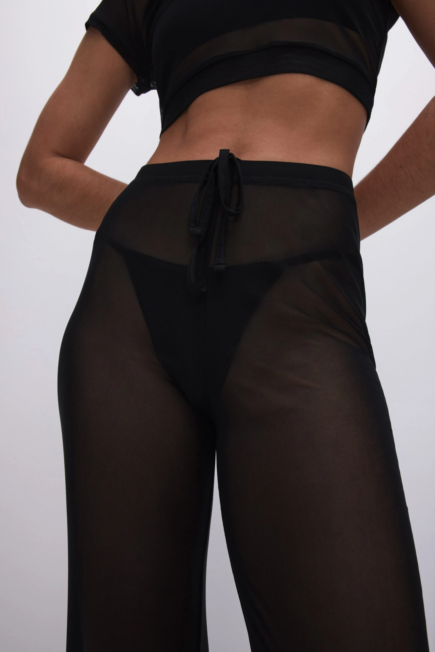 Turn up the heat with the Mesh Wide Pants, the perfect bathing suit cover-up that makes you feel sexy and chic. Crafted with sheer mesh, these pants are a light and airy wardrobe must-have.