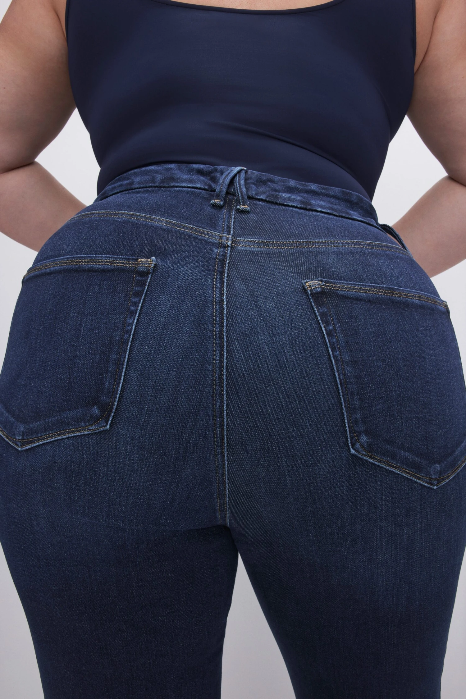 Super sexy high-rise jeans with a long slim fit featuring modern bootcut legs. Good Legs are the body-hugging, booty shaping jeans of your dreams. Crafted from our innovative SoftTech Denim, they deliver unparalleled softness and unmatched lightness, creating an illusion as if you’re wearing nothing at all.